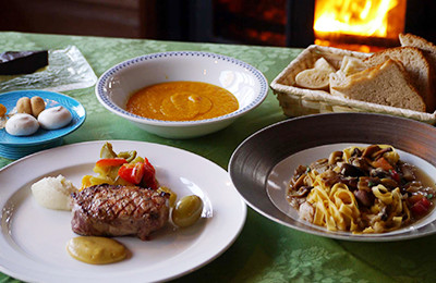 The restaurant welcomes all guests rather staying at the Pension or not. Seating is limited, so please feel free to make a reservation.